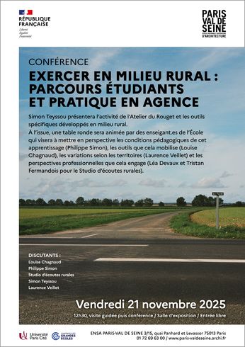 Simon Teyssou présentera l'activité de l'Atelier du Rouget et les outils spécifiques développés en milieu rural. À l'issue, une table ronde sera animée par des enseigant.es de l'École qui visera à mettre en perspective les conditions pédagogiques de cet apprentissage (Philippe Simon), les outils que cela mobilise (Louise Chagnaud), les variations selon les territoires (Laurence Veillet) et les perspectives professionnelles que cela engage (Léa Devaux et Tristan Fermandois pour le Studio d'écoutes rurales).