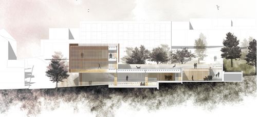 Comment revaloriser une dent creuse culturelle caractéristique des grands ensembles des années 60 par ses qualités intrinsèques ? Topographie, paysage, sol et programme créatif sont des thématiques répondant à cela.
