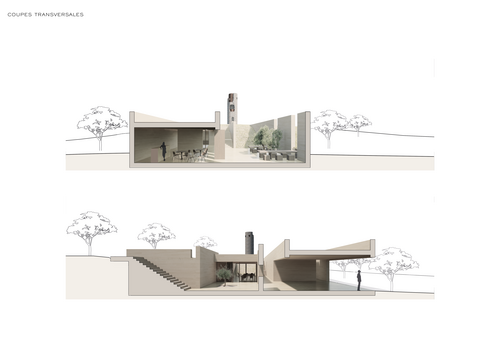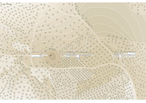 Pour répondre au mieux à la problématique il faut donc penser à la limite entre l’édifice et le paysage. En les imbriquants, il s’agit de tenter de flouter les limites entre le bâtiment et le paysage.