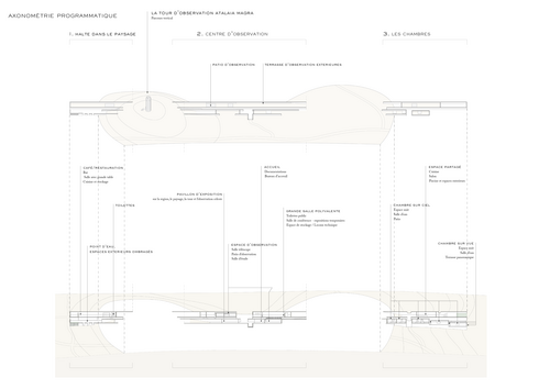 L’enjeu programmatique est de mettre en avant l’environnement et les vestiges de l’Atalaia Magra (selon les volontés de la ville de Moura) tout en y apportant une plus-value qui ferait de ce site un site touristique plus attrayant.