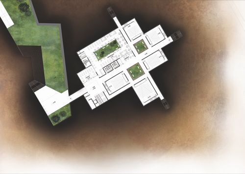 L’intégration souterraine offre un dialogue avec les traces du passé, le rapport à la terre étant un élément primordial du fort. Les ouvertures zénithales accueillent par ailleurs des patios qui sont reliés entre eux par un jeu de géométries qui s’unissent et forment un ensemble. Cet ensemble compose un parcours souterrain d’espaces architecturaux simples et empreints de tranquillité qui enrichit la relation entre l’homme et la nature.