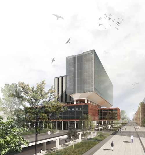 L’enjeu principal est de faire entrer la lumière dans l’immense surface des sous-sols par des moyens multiples : patios, miroirs d’eau, ouvertures zénithales. Cette infrastructure souterraine sera essentiellement un lieu de production agricole.