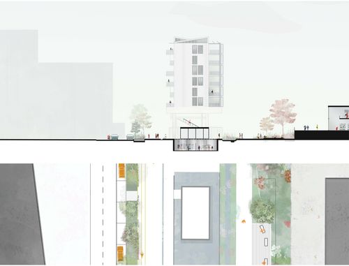 Un bâtiment qui se tourne vers le paysage - Coupe perspective