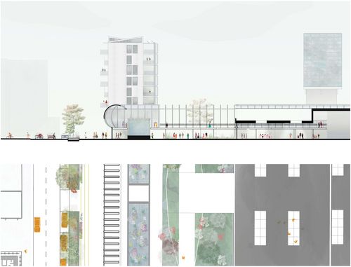 Un séjour urbain aux nombreux espaces ouverts - Coupe et plan des différentes séquences urbaines