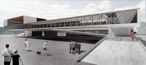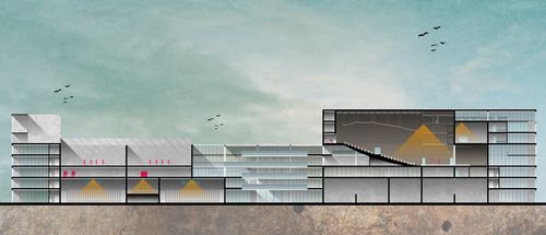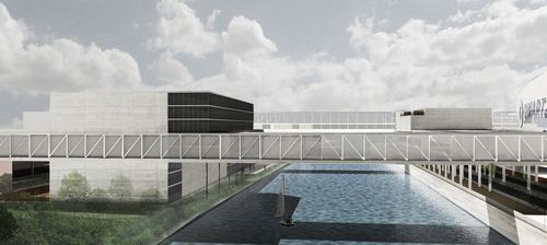 Seulement, le bâtiment proposé ne s’arrête pas seulement à la question du franchissement mais se propose de connecter au centre commercial un programme culturel en rapport avec la Cité du Cinéma. Il s’agirait donc de transformer le centre commercial en pôle culturel.