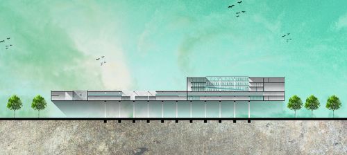 Le «Bâtiment Infrastructure» à l'origine de notre étude relie deux territoires en mutation en franchissant la Seine grâce à deux poutres habitées. La rive côté Villeneuve la Garenne, face au centre commercial Qwartz est inaccessible au niveau du RDC. Ainsi, comme il est impossible de franchir par le niveau du sol, nous proposons de franchir par le niveau R+3. Ainsi, nous recréons la voie piétonne en haut. La Seine est alors franchie par la «Structure habitée», qui devient espace architectural inspirant tout le projet.