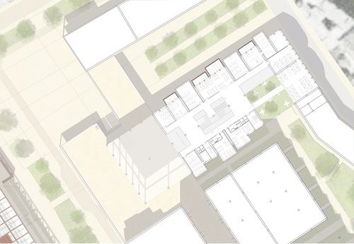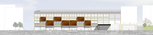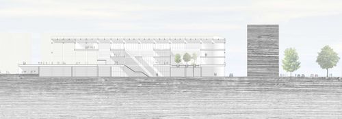 Un rythme dans la halle est amené en créant des structures indépendantes pour les salles de cours et ateliers. Celles-ci viennent alors sortir en façade et rythme l’édifice. Réalisées en structure bois et contreventées, celles-ci sont éclairées par le dessus afin de laisser le linéaire de murs disponible pour les éventuels affichages. Éclairer les salles naturellement de cette façon permet également de créer une ambiance particulière à la fois à l’intérieur de la pièce comme à l’extérieur.