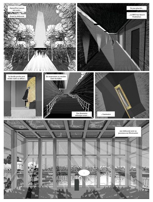 Notre projet, qui se positionne comme une question plus qu’une réponse, propose un développement vertical des cimetières historiques existants.