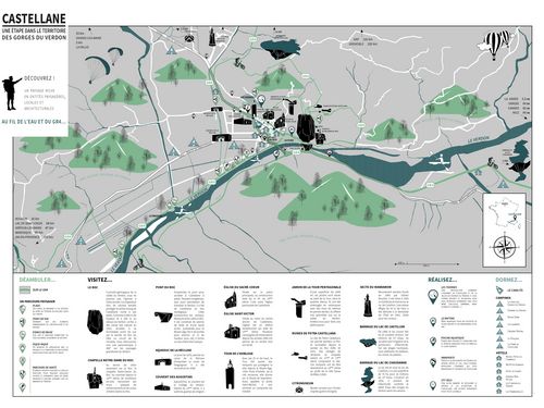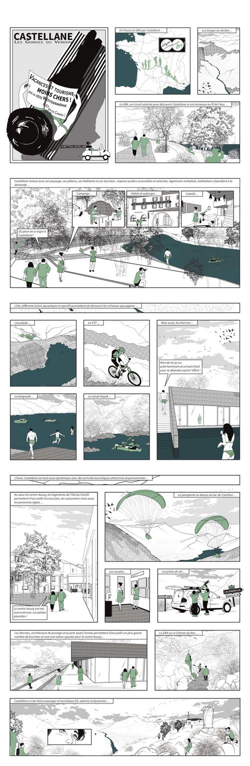 Différents constats sont mis en avant et mis en interactions à travers un schéma de cohérence qui vient mettre en liaison le projet de tourisme, s’applique à différentes échelles : le territoire, la commune, le centre-bourg, ce qui vise à renouer les liens entre Castellane et son paysage, les Gorges du Verdon et son territoire. Cette coopération entre ville, tourisme et paysage naturel, est aujourd’hui des éléments qui dépendent de l’attractivité de Castellane. Il s’agit donc d’inciter les habitants et les visiteurs à déambuler dans le paysage à travers le GR4 à toutes les échelles : découvrir, réaliser, habiter, etc.