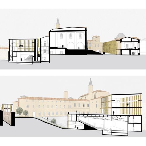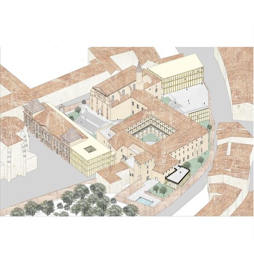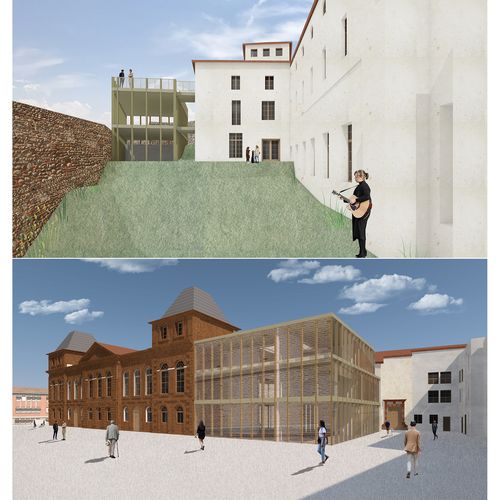 La transformation du couvent des carmélites et du tribunal d'Instance de Pamiers procède de l'adaptation de différents patrimoines dans le but d'accueillir un conservatoire de musique dans la ville natale du compositeur Gabriel Fauré.