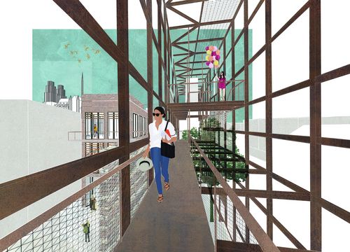 Le projet tient compte de la stratification historique importante sur le site, en mettant en valeur le mur romain et la tour médiévale situés sur la parcelle. Il permet également la continuité des espaces publics et de la promenade urbaine qui parcourt le quartier en proposant de nouvelles porosités du lieu et de nouvelles respirations urbaines et paysagères.