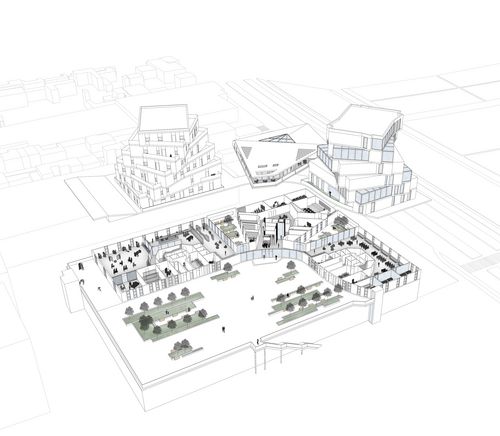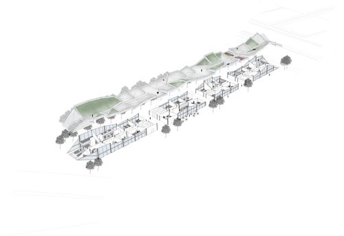 AXONOMETRIE DU CENTRE NUMERIQUE ET DES ESPACES CONVERTIBLES