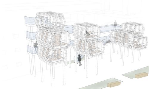 AXONOMETRIE DE SECTION DES MODULES D'HEBERGEMENT D'URGENCE