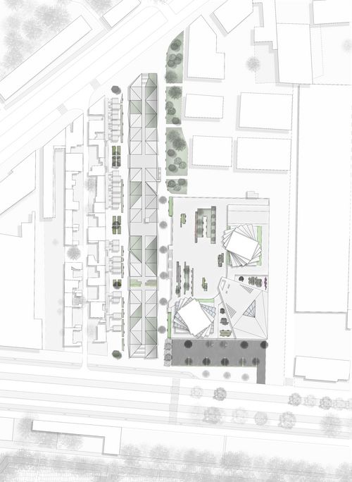 Dans un souci écologique, le centre numérique sera construit sur un bâtiment entrepôt existant. Sur ce dernier, sont disposés des bâtiments convertibles en logements ou bureaux en R+6.