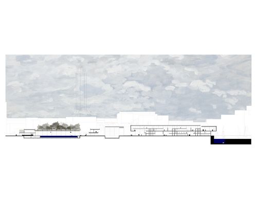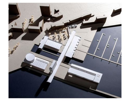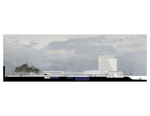 La composition urbaine permet d'installer une limite entre terre et mer sans dénaturer le paysage de l'interface maritime du Havre. A l'échelle architecturale, cette composition nait à partir du sol et du fond dans lequel elle s'installe. Ainsi le paysage et la ville pénètrent au cœur du projet.