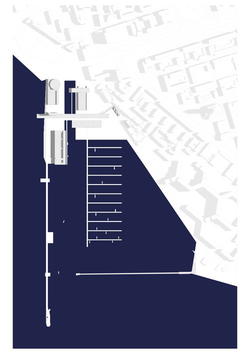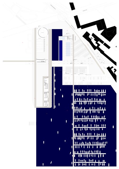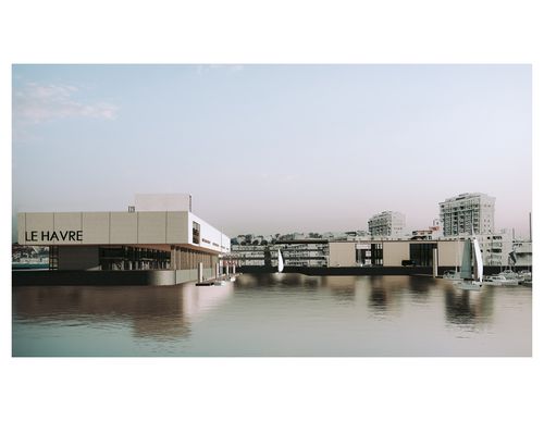 La présence puissante des bassins apporte une lecture d'axes forts à l'échelle du territoire. Le projet s'installe sur le terre-plein nord du port de plaisance du Havre. Il est comme un seuil entre l'échelle dense de la ville et l'échelle infinie de la mer.