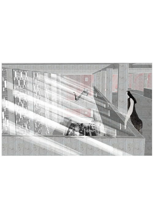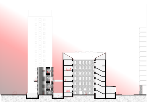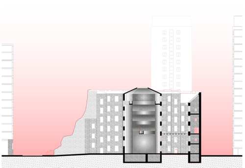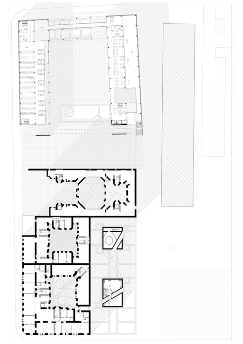 Afin de générer une mémoire vivante donc appropriable, le projet vient à la fois révéler les traces du passé identifiées comme signifiantes (fondations d'édifices détruits, fragments du mur du ghetto, etc.) et enrichir le lieu de nouveaux programmes. Ceux-ci se connectent symboliquement et formellement à l'existant. L'espace publique suspendu qui traverse tous les éléments du projet permet d'organiser une mise en récit du passé. Pensé comme dispositif scénographique, il crée la cohérence entre ces traces éparses.
