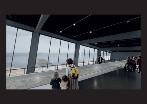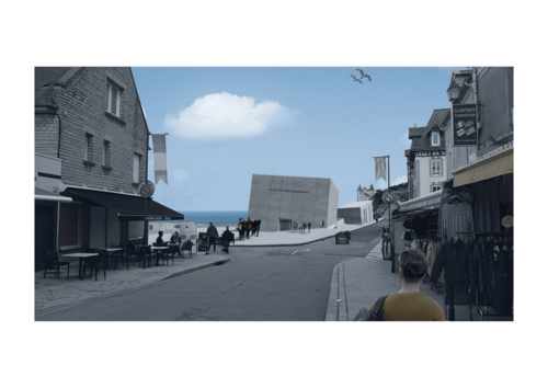 Situé en front de mer, sur la place centrale de la commune, le futur musée constitue un lieu phare de la ville et une composante urbaine majeure. La place du 6 Juin 1944, aujourd'hui dédiée intégralement au stationnement, deviendra avec le nouveau musée un espace piéton. La commune a déjà anticipé le report du stationnement sur des parkings communaux en amont du littoral afin de permettre la mise en valeur de la qualité paysagère remarquable du site. La restructuration des abords du musée vise à: