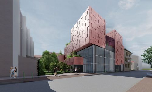 Dans sa dimension visuelle et plus architecturale, le projet devait aussi s'intégrer pleinement dans le tissu urbain et dans l'îlot en lui-même. Sans être refermé sur lui-même, il se devait d'être solidaire avec le contexte urbain. C'est donc ces deux points qui ont guidé ma réflexion dans l'élaboration du projet qui se compose d'un musée et d'un square.