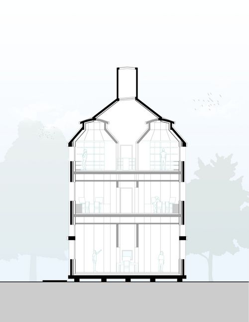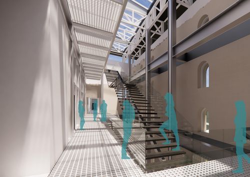Le corps central du moulin est évidé afin d'offrir à la façade intérieure l'espace suffisant pour la contempler, mettre en valeur sa grande hauteur et conserver le rapport au ciel de la ruine. Les différentes interventions dans le moulin, les silos ou la nouvelle construction ont pour vocation d'être en contraste pour donner une lecture claire de la chronologie, ainsi qu'ouvrir sur le paysage proche et lointain.