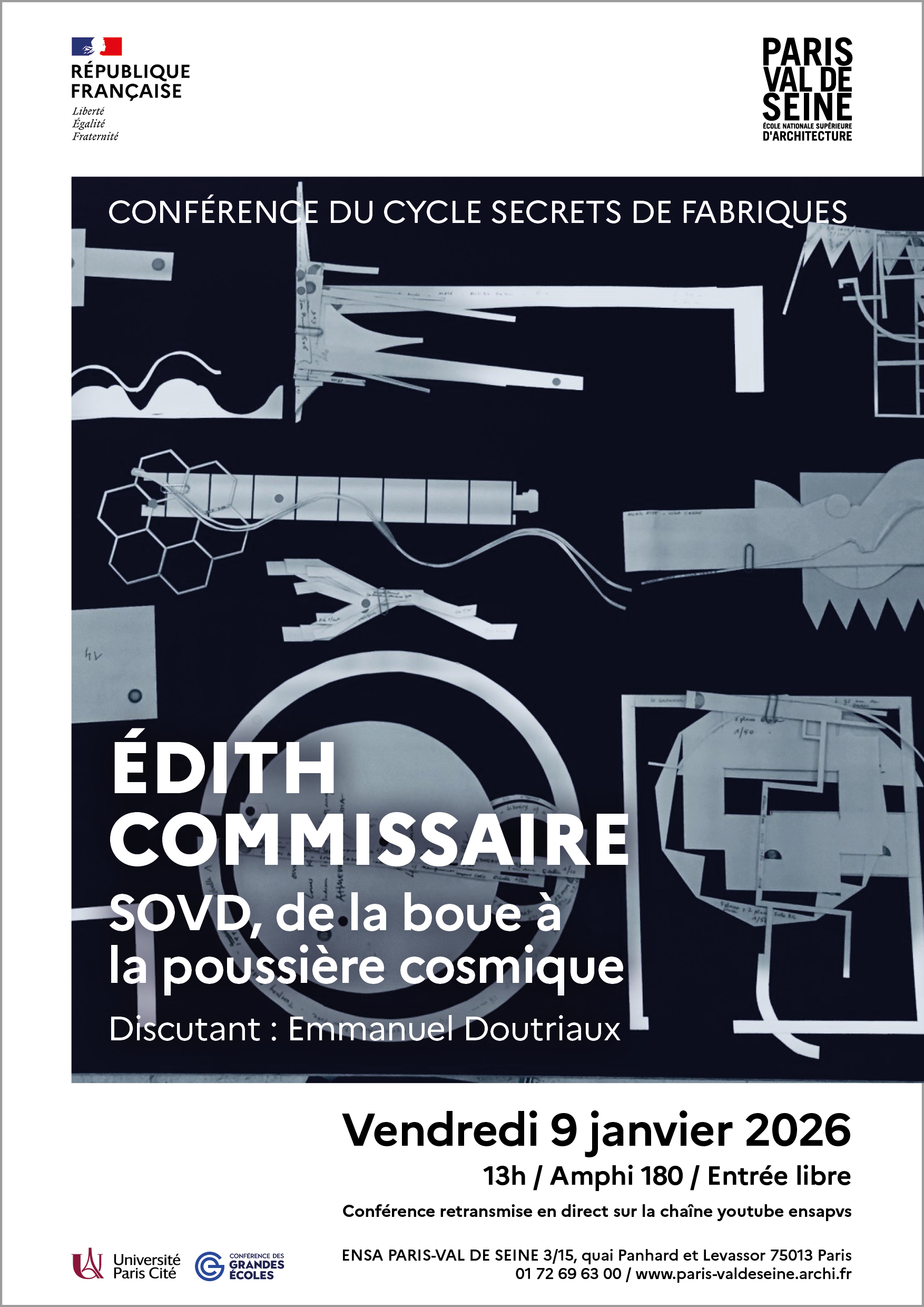 Dans le cadre du cycle de conférence "SECRETS DE FABRIQUES", l'École reçoit Edith Commissaire, autrice de SOVD une histoire subjective de l'architecture.
