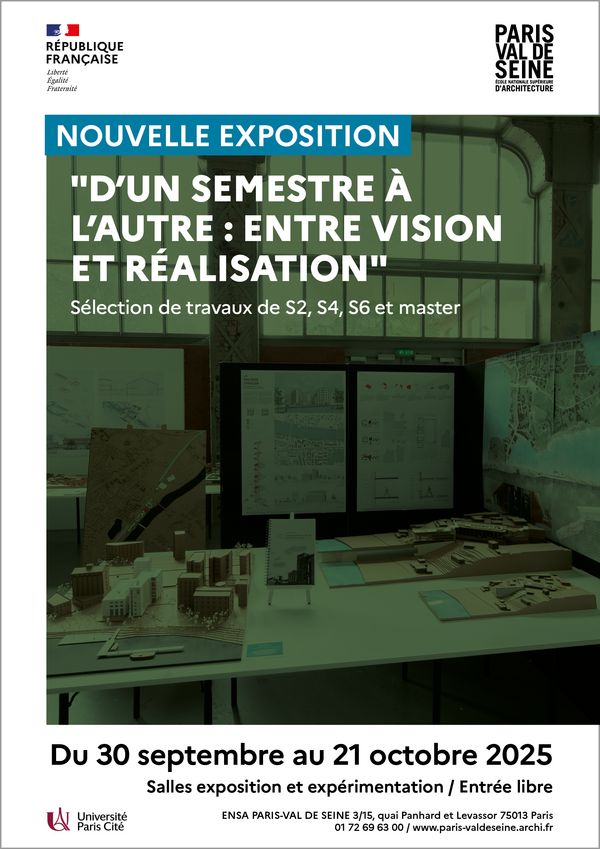 L’exposition "D’un semestre à l’autre : entre vision et réalisation" vise à présenter les travaux de projet réalisés à l’ENSA Paris-Val de Seine au second semestre de l’année universitaire 2024/25.