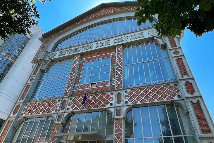 Située sous la toiture de l’ancienne halle de l’usine d’air comprimé de la SUDAC, au 2e étage de l’ENSA Paris-Val de Seine, la bibliothèque se déploie sur deux niveaux et près de 1300m².