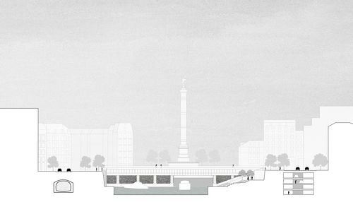 La place de la Bastille devient un réel espace public ouvert sur le paysage, et ayant un lien direct avec le port de l’Arsenal dorénavant occupé par des activités de loisirs. Il devient un lieu de promenade majeur dans la capitale retrouvant son rapport avec la Seine. Le quai de la Rapée accueille un programme culturel lié à l’histoire, à la géographie et au devenir du canal Saint-Martin et de la Seine.