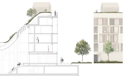 Nous avons souhaité proposer sur ce site une manière d’habiter toute particulière, par laquelle le parc ne soit pas vécu comme un espace purement contemplatif, mais plutôt comme un élément que l’on parcourt et que l’on pratique chaque jour. Ce projet engage une prise de position sur la démolition en vue d’une revalorisation des éléments architecturaux. La figure du cercle s’annonce comme un élément majeur ajouté, posé, structurant le vide. Entre dominant et dominé, la forme abstraite établit un rapport de force visant à l’équilibre dans les échelles du bâti. L’intérêt programmatique de cette proposition réside dans les typologies et activités à développer de façon flexible et polyvalente. Le liant de tous ces programmes, équipement et logement confondus, c’est le parc, qui vient comme un ciment, un plateau, un catalyseur.