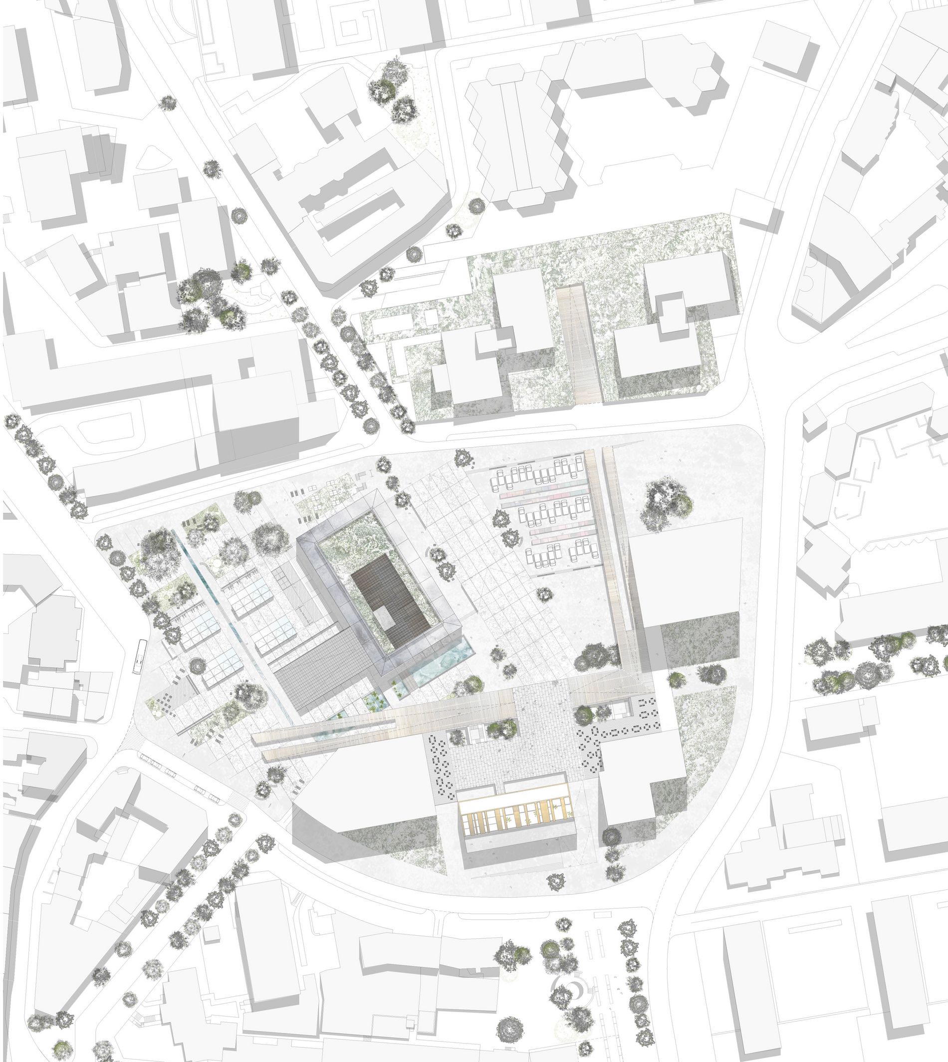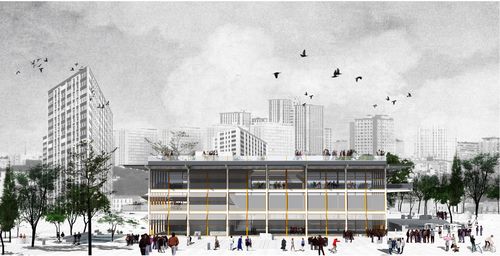 Il est le point de rassemblement entre les différentes fonctions que propose dès lors la nouvelle place des Fêtes.