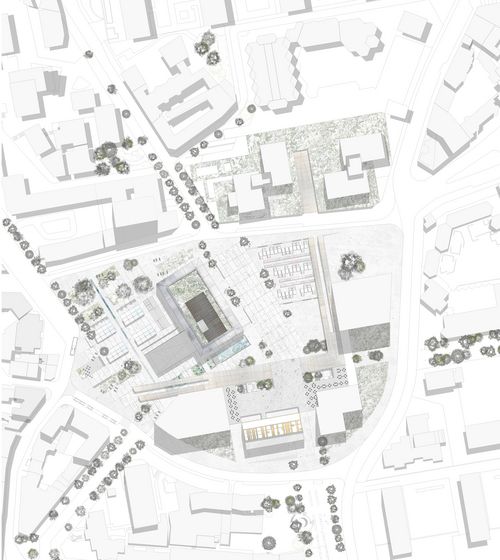 Centre culturel et associatif, le bâtiment est ouvert sur une place. À cheval entre deux espaces, il fait le lien entre les habitants, les promeneurs et les étudiants.