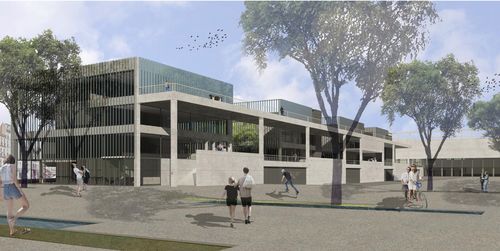 Le projet est fondé sur une réinterprétation de l'archétype architectural méditerranéen traditionnel : la terrasse. Cette dernière permet de répondre aux problématiques liées à l'espace public et à l'enclavement du site. Le premier projet prend la forme d'un village du sport : les terrasses offrent à tous les usagers une libre circulation autour de plusieurs pavillons. Ainsi l'usager peut accéder aux terrasses dédiées au sport pour être spectateur ou participer aux activités proposées.