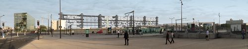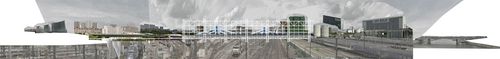 Situé le long du bd Périphérique, le pont habité à structure suspendue permet de franchir le réseau ferré, provenant de la gare d’Austerlitz, sur 550m, ainsi que répondre aux besoins en logements.