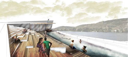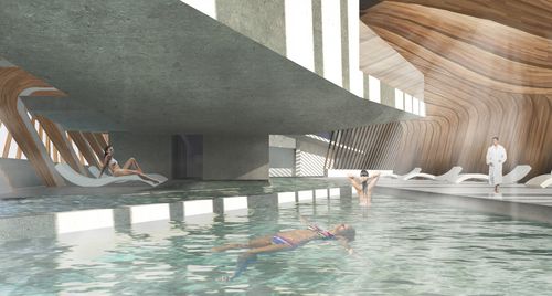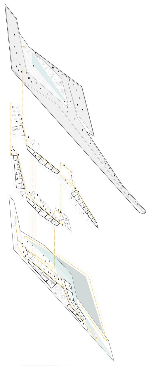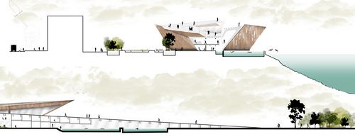 L’eau et la terre sculptent ensemble des usages pour l’homme qui s’y adapte car il y retrouve des forces élémentaires. L’échelle urbaine devient celle du corps en entrant dans le centre de bien-être. La morphologie de la terre correspond aux nouveaux usages.