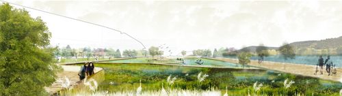 Ce projet s’installe à l’entrée de ville de Vernon, sur le site de l’Halage, pour devenir un lieu charnière liant la nature à l’urbain, aujourd’hui visiblement séparés.