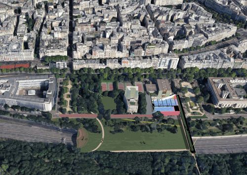 Couverture du Périphérique, piétonnisation d’une voie automobile, intégration du Centre Sportif Henri de Montherlant et d’une résidence intergénérationelle à Paris-Dauphine : L’état a cédé l’ex-site EPF (Expéditions polaires françaises) à la Ville de Paris lors des transaction pour le choix d’implantation de l’ambassade d’URSS, au tournant des années 1970. De ce fait, l’espace attenant au bâtiment du Centre Sportif municipal Henri de Montherlant, se prête parfaitement à l’extension de ce dernier et au déploiement d’un ensemble architectural cohérent. En phase avec l’université Paris-Dauphine, et le budget accordé par l’entremise du Ministère de l’enseignement supérieur et de la recherche à la comue Paris Sciences et Lettres, la constitution du Campus Vert autour des infrastructures universitaires et sportives des Portes Dauphine et La Muette augurerait d’une prise en compte du bien-être des étudiants dans l’aménagement contextuel d’un bâtiment d’enseignement. M’appuyant sur mes expériences professionnelles d’étudiant, j’ai saisi l’occasion d’un projet polémique situé sur un terrain convoité pour avancer : la construction de logements sociaux dans le xvie arrondissement. Par ailleurs, le Crous est une pierre angulaire de la stratégie d’attractivité de la ville. Ligne commune, le confort attendu des étudiants suscite la remise en cause de l’état actuel du site, dont le coeur est une friche. Son développement durable passe-t-il par une remise en question urbaine ou faut-il conserver sa nature sans se conformer aux désirs des usagers ?
