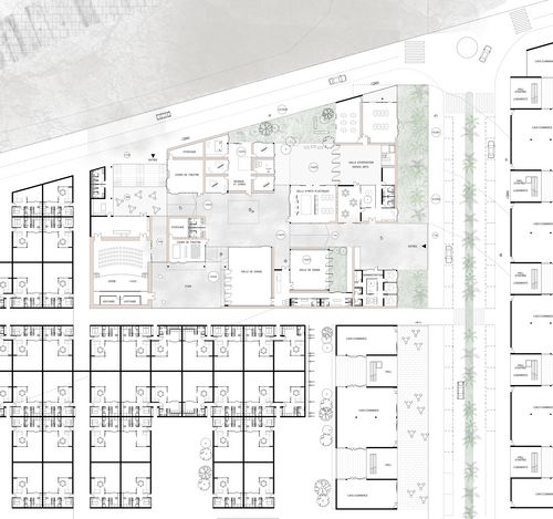 Plan de RDC d'un espace de vie du quartier - Ecole et maisons