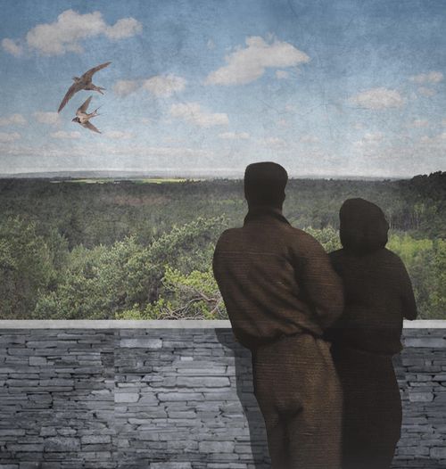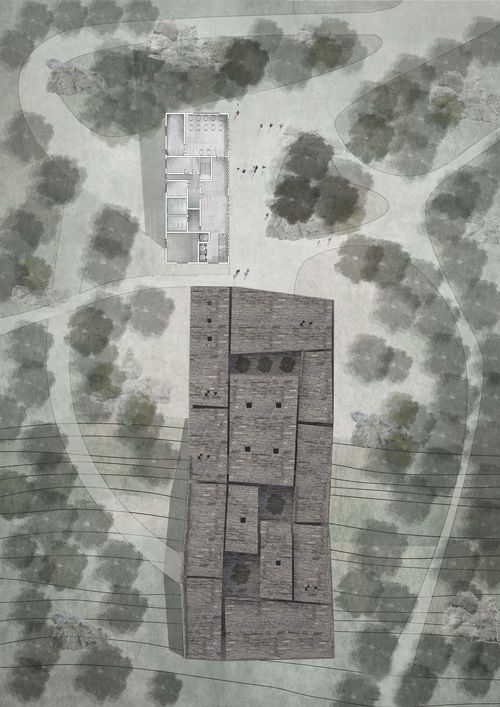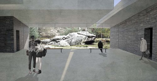 Site d’intervention c’est sont les gorges d’Apremont. Le site est situe dans la Forêt de Fontainebleau a coté de la ville de Barbizon et Fontainebleau. Ce site est très connu pour la randonnée et l’escalade. L’endroit offre un beau point de vue sur la forêt ansi que nombreaus circuits, sentier, rocher et beau paysage a decouvrire. C’est un mélange d’arbres de rochers et de sable. L’idée d’un centre de visite est une idée assez évidente, qui doit absolument exister à cet endroit, le site est aménagé en partie, il y a une route, un parking, mais on ne sait pas vraiment où aller, on ne sait pas vraiment non plus où l’on se trouve une fois sur le site. Ce centre va donc avoir comme tâche d’orienter et d’informer sur la forêt, dire quoi voir, tout en présentant aussi son histoire, et surtout, peut-être, renseigner sur l’état existant de la forêt. Il s’agira ainsi d’informer les visiteurs sur l’ensemble des sites naturels, culturels et historiques accessibles au public aux abords de la forêt et à travers l’Île-de-France, afin de mieux répartir les flux touristiques et ainsi prévenir l’impact touristique sur le site (piétinement, etc.). Ce centre de visite doit servir aux visiteurs mais aussi à tous les événements, les rencontres qui se font autour des questions touchant la forêt.