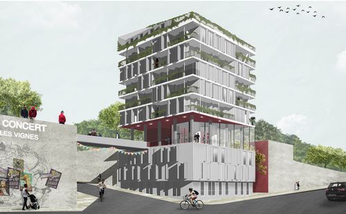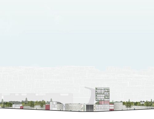 Par ailleurs, les orientations retenues lors du premier semestre et l’implantation de la forêt en cœur de boucle nous ont imposé de travailler également le long de la D1 constituant l’axe est/ouest de la ville. En effet, la présence de la forêt en proximité immédiate de la commune de Chanteoup-les-Vignes nous offrait la possibilité de faire entrer la nature dans la ville. La question des lisières nous étant apparue comme fondamentale lors de notre analyse commune du premier semestre il nous était alors possible de travailler autour du cas particulier de cette lisière forestière en cœur de ville.