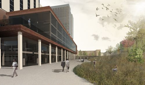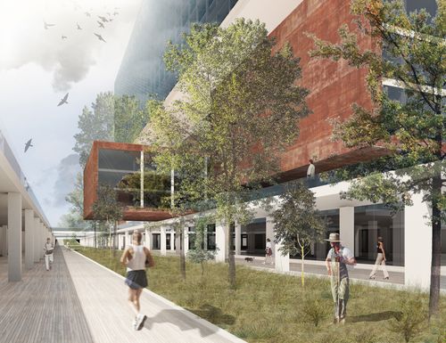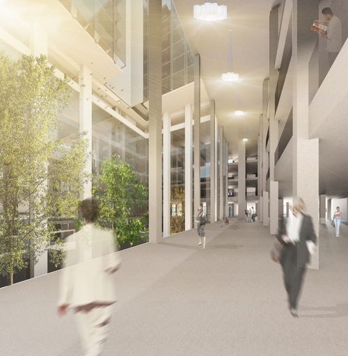 L’enjeu principal est de faire entrer la lumière dans l’immense surface des sous-sols par des moyens multiples : patios, miroirs d’eau, ouvertures zénithales. Cette infrastructure souterraine sera essentiellement un lieu de production agricole.