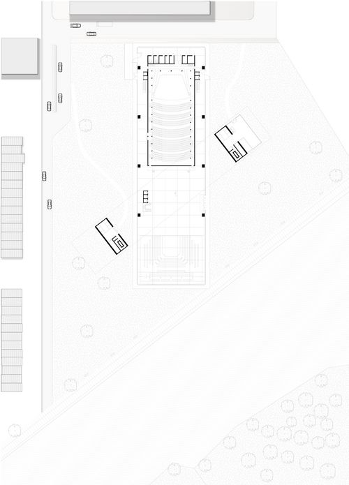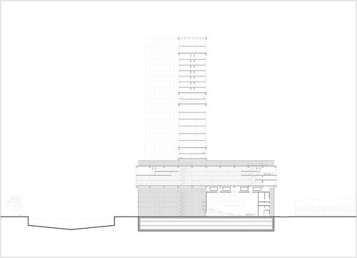Pour marquer l’ouverture du corridor à un usage mixte, notamment culturel et public, le projet architectural est public et d’envergure. En terme de programme, il vient s’appuyer sur la présence du Mana Contemporary : il y avait les arts visuels, il y aura aussi les arts de la performance. La partie publique résonne avec le prestige d’une nouvelle centralité en disposant notamment d’une salle de spectacle de 1500 places en rdc, et elle résonne aussi par son rapport au quartier d’habitation de Pilsen au nord du corridor avec la présence d’un conservatoire de musique au dessus d’un rdc disposant d’une importante hauteur et pensé comme un espace public pouvant être aménagé de plusieurs manières.