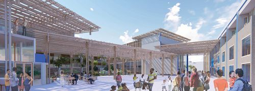 Prespective de la place du Madras - espace public principal, canopées en bambou