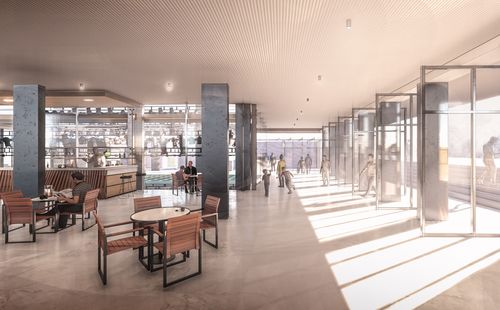 Fondation Massa - Vue sur l'espace de réception et la cage de scène