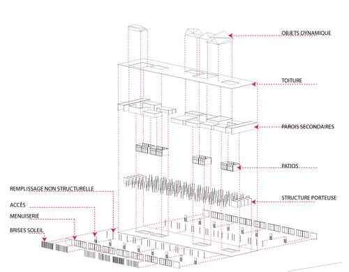 Une attention particulière est portée aux relations entre les différents éléments composant l’espace public. On offrant des espaces de qualité et en traitant la porosité ainsi que les articulations, flux, les percer visuelles, le travail urbain permet de désenclaver le site pour le rendre à la ville et lui donner une vocation et un nouveau souffle de vie.il laisse envisager un travail architectural tout en finesse pour arriver à dialoguer avec le contexte. le projet architectural est une véritable articulation urbaine au coeur du quartier, il joue un rôle de liaison à plusieurs échelles .