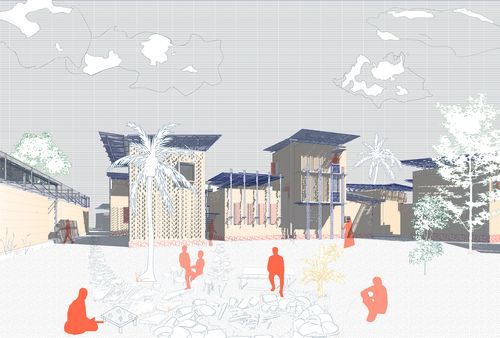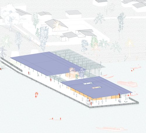 Grand Bassam est la capitale historique de la Côte d’Ivoire. Située à 43 kilomètres à l’Est d’Abidjan, cette ville a un rapport à l’eau indéniable, étant localisée à l’embouchure de trois cours d’eau, dont les deux plus importants du pays : la lagune Ebrié et le fleuve Comoé. L’origine de notre intérêt pour ce sujet se tient dans l’urgence écologique majeure, qui concerne le contexte dans lequel évolue la ville. Elle s’inscrit dans un environnement naturel présentant plusieurs lagunes qui subissent de fortes pollutions urbaines, et qui plus est, au contact de conditions climatiques singulières. Cette urgence écologique concerne également les manières de construire, dont les matériaux sont actuellement pas du tout adaptés au contexte local. Notre projet se développe autour d’une démarche programmatique qui s’inscrit dans ces 3 échelles : à l’échelle du territoire une gare fluviale et un marché viennent répondre aux questions de la mobilité via les voies fluviales. A l’échelle de la ville une école en tant qu’équipement qui va permettre de pallier aux besoins de la ville liés à la surpopulation des salles de classe. Pour finir à l’échelle du quartier nous proposons des logements s’inscrivant dans une nouvelle manière d’habiter la lagune en relation avec les modes de vie locaux.