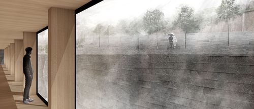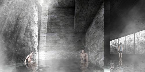 L’idée est de proposer à l’intérieur du bâtiment des espaces centripètes qui forcent le visiteur à se focaliser sur les éléments importants du site que le projet a pour ambition de révéler, éléments tels que l’eau, la minéralité, la lumière et la gravité qui viennent s’exalter à travers le parcours qui permet d’expérimenter les différentes séquences et d’ainsi prendre le temps de prendre le temps.
