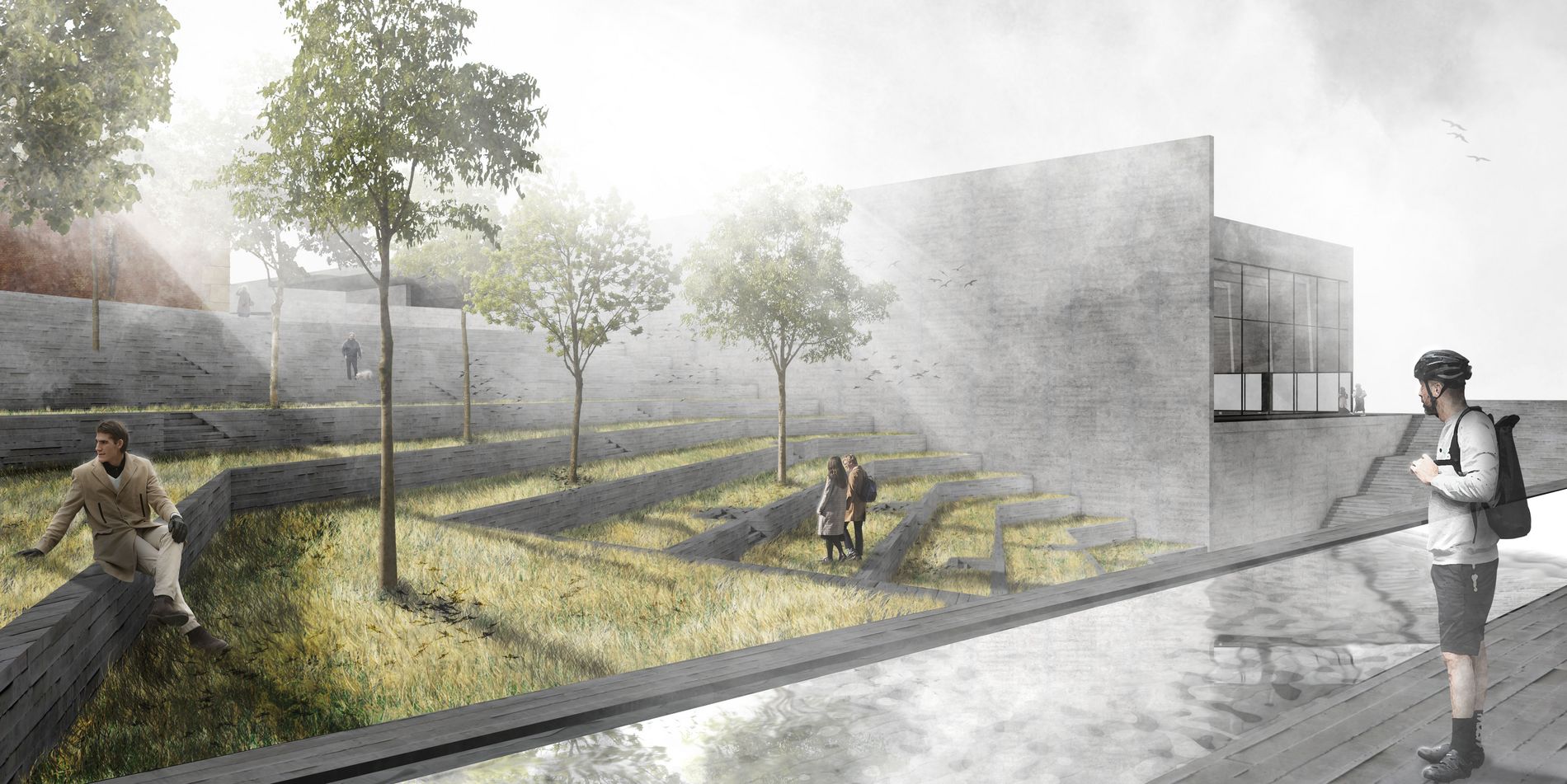 L’idée est de proposer à l’intérieur du bâtiment des espaces centripètes qui forcent le visiteur à se focaliser sur les éléments importants du site que le projet a pour ambition de révéler, éléments tels que l’eau, la minéralité, la lumière et la gravité qui viennent s’exalter à travers le parcours qui permet d’expérimenter les différentes séquences et d’ainsi prendre le temps de prendre le temps.