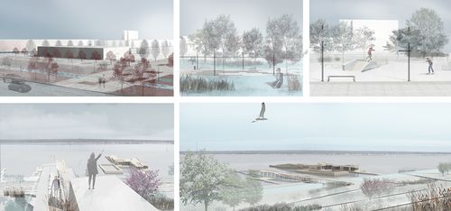 Le projet se situe dans une importante zone de développement de la ville, qui a pour dessein de créer une coulée verte traversant tous les quartiers du nord au sud le long de la rive du fleuve. Mon objectif urbain est tout d’abord de créer une liaison entre l’artère principale de la ville et la Volga et d’y proposer un espace multifonctionnel tenant compte de la demande de la ville et de ses habitants et en ramenant une certaine cohésion au sein d’un espace urbain mal desservi tout en complétant ses équipements. Une allée rectiligne reprend un axe depuis un mémorial commémorant la bataille de Stalingrad afin de proposer un longue perspective jusqu’au fleuve ainsi qu’un parcours temporel et à échelle variable depuis le monumental de la statue commémorative et de son point de vue sur la ville, jusqu’à l’échelle humaine d’une promenade verte vers le fleuve et ses activités. L’aménagement d’un espace public s’imposait également au croisement avec l’artère principale au niveau des arrêts de transports à mi-parcours jusqu’au fleuve, incluant un espace paysagé et proposant également des commerces et un parking. En descendant vers le fleuve les espaces verts sont équipés selon des séquences d’activités différentes : un point de repos, un skate parc et un terrain de sport ouvert au public. En arrivant au versant des rives du fleuve, la végétation change la régularité de l’allée et couvre la berge de façon plus naturelle. L’escalier centrale se prolonge sur le fleuve par une jetée qui descend en pente douce jusqu’à se perdre dans l’eau. Ce parcours devient l’un des éléments importants de la ville. Le concept du projet architectural, quant à lui, trouve son inspiration dans les jetées de plaisance de Grande Bretagne et des Etas Unis qui sont devenus les points attractifs, vivants et structurants sur les longues lignes des plages. Pour valoriser la présence de l’eau dans la ville le programme inclut une station du transport fluviale par moyen alternatif de déplacement par petites navettes fluviales, très prisé particulièrement pendant la période estivale. Prenant place au sein de « l’académie du sport » de la ville, la nouvelle base nautiques retrouve un placement sur le fleuve contrairement de l’ancienne. Les rubans de la jetée reproduisent le dessin des ondulations de l’eau du fleuve comme les multiples terrasses dispersées sur le versant de la rive. Le bâtiment de la base nautique imite aussi cette forme d’onde par la pente douce qui se transforme en une toiture-terrasse, mais aussi la piscine et les escaliers. Le bâtiment d’accueil est accessible par la jetée flottante et comporte d’une salle d’accueil et une salle polyvalente modulable par séparation en deux plus petites pièces. En traversant le couloir, au fond, se situe la salle des moniteurs, juste à côté de la salle du sport, devant laquelle se trouvent les vestiaires, les sanitaires et l’accès à la piscine découverte. Cette partie du bâtiment inclue également les locaux techniques nécessaires pour le fonctionnement des systèmes de recyclage de l’eau, des locaux de services et un hangar à bateaux… Ce projet de fin d’étude s’oriente sur les tendances d’écoresponsabilité, le nouvel site favorisent la circulation douce , l’implantation des espaces verts et la création de la connectivité par le transport fluvial . En fait, dans ce projets l’eau fait partie de la vie urbaine, valorisant les relations avec des espaces bleus grâce aux programmes visant des différentes activités sur l’eau. L’intervention architecturale, basée sur l’approche historique au fleuve, permet de donner un lieu attractif aux visiteurs de la ville et répondre à la demande des citoyens.