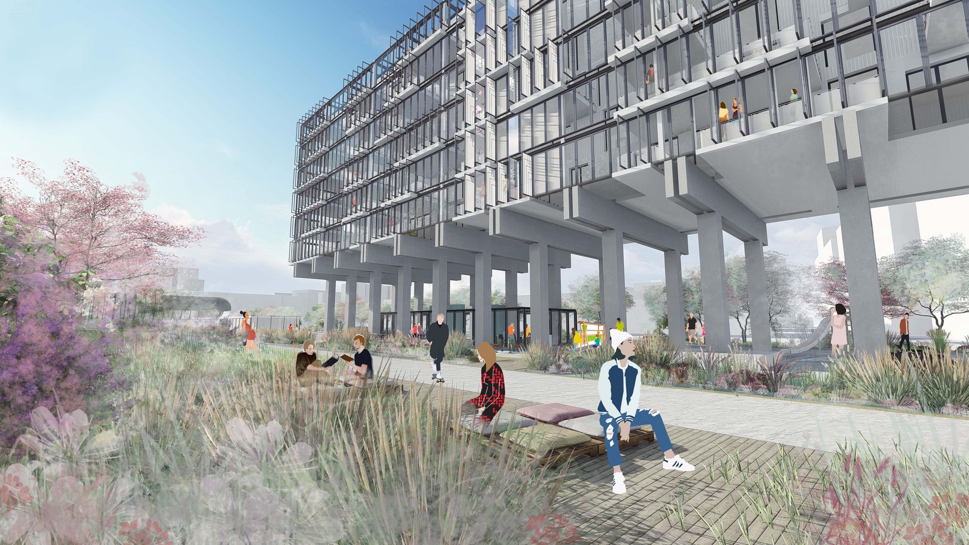 Du collectif à l’individuel , une journée au sein du projet - Vue depuis le mail sur l’immeuble