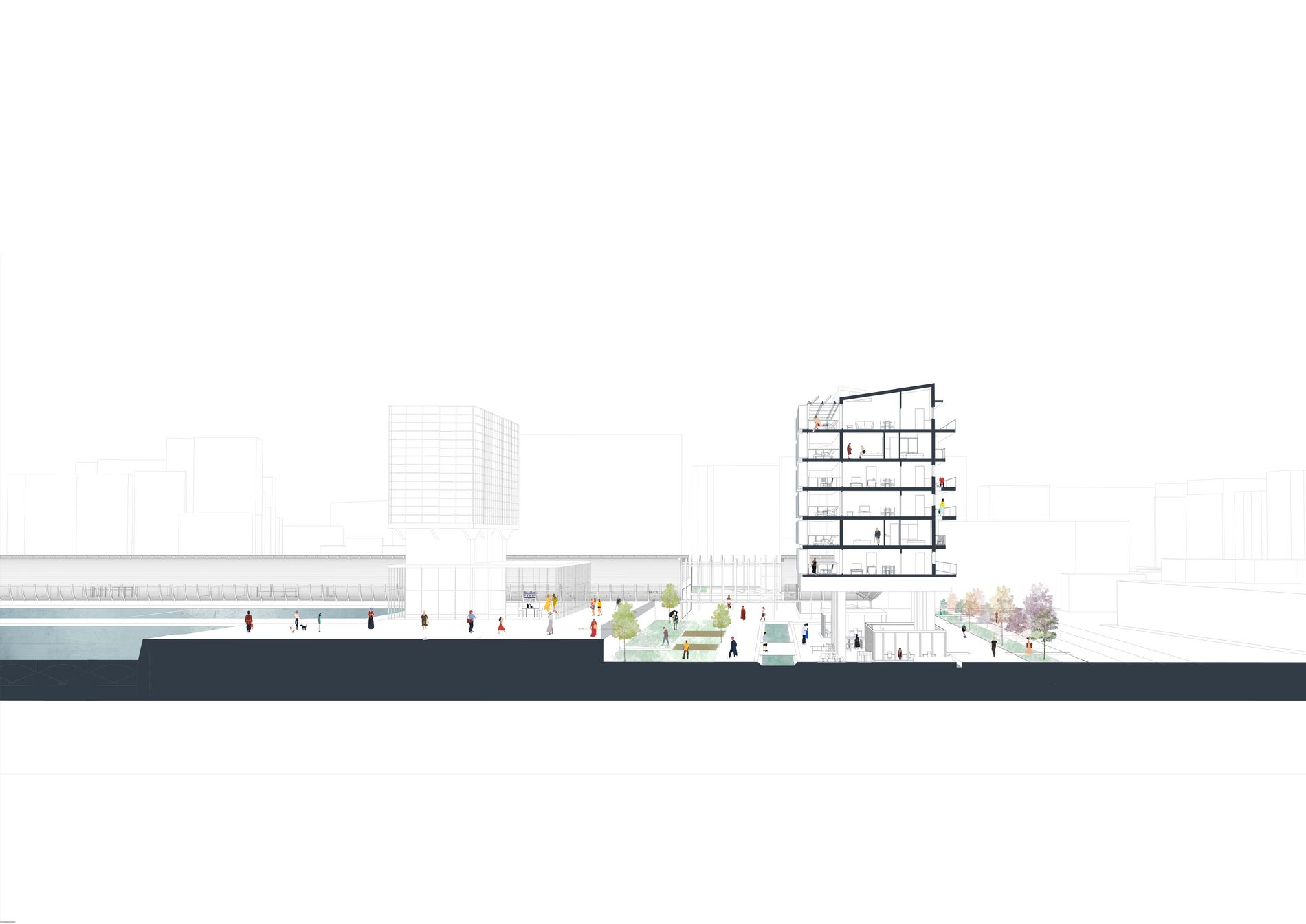 Un bâtiment qui se tourne vers le paysage - Coupe perspective